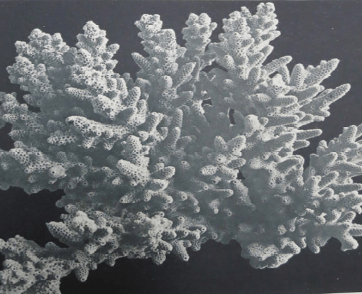 “To return to the subject of the Abrolhos corals, there was one form … notable for its usually pale sage-green hue, and the remarkable diversity in the contour of its coralla. In some instances, it formed robust, shortly branching, bush-like growths; in others fan-like expansions, or even encrusting masses, or it might be a combination of these types.”