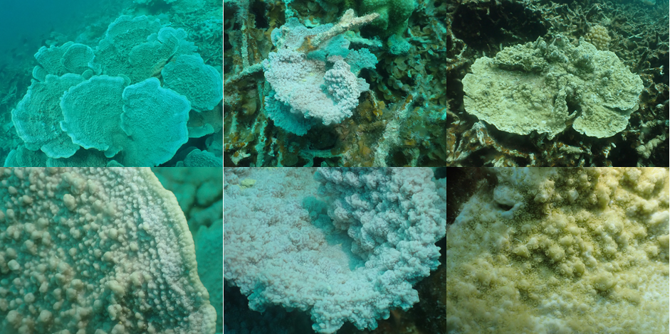 The Blue Holes at the southern end of the Cocos Island Lagoon seem to be a particular rich habitat in terms of novel species with potentially three new Montipora species (Fig. 1). The Blue Holes are a highly unusual habitat and very prominent in the lagoon when viewed on Google Earth. The holes are mostly circular and range in size from 10s to 100s of metres in diameter, with a maximum depth of 5-12 m; some are highly turbid, other reasonably clear, some are coral graveyards littered with the skeletons of dead colonies, others contain extensive monospecific stands of Echinopora cf. lamellosa or various staghorn Acropora species.