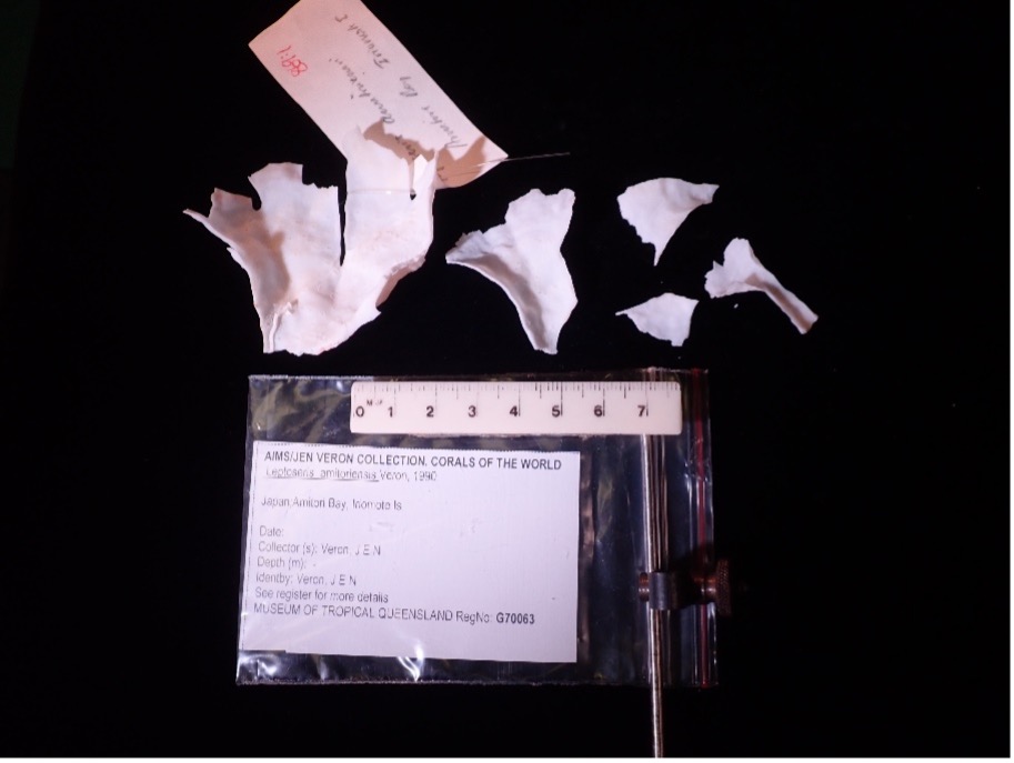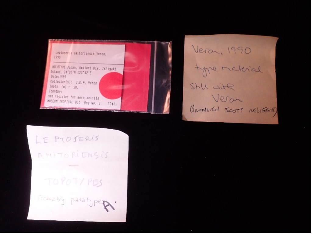 This note outlines some excellent detective work conducted by a group of Japanese coral scientists (Fujii et al. 2018) to establish that fragments of the holotype of Leptoseris amitoriensis Veron 1990, which was thought to be lost, do indeed exist. In addition, like many of these notes, there is also a moral to the story: keep good notes when collecting your specimens, pay attention to detail and do not expect to rely on your memory to reconstruct your sampling efforts.