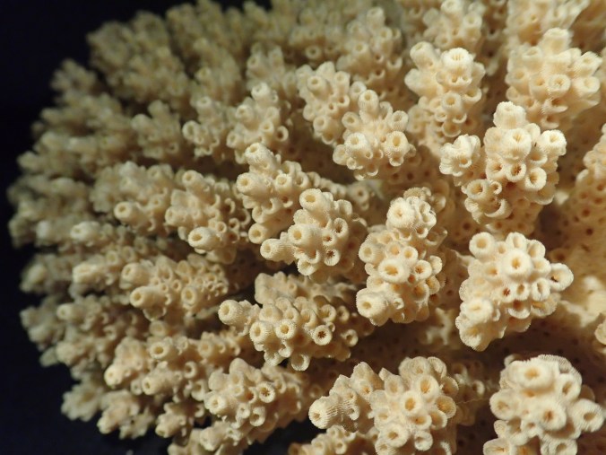 The confusion surrounding the species description and its usage in field guides emerged almost a century after Brook’s description when the name A. anthocercis was re-applied to a very different growth form. Working with samples collected from the GBR, Veron and Wallace (1984) interpreted Brook’s species as a plating coral with tapering branches, large and conical axial corallites and labellate radial corallites. Although this interpretation was widely adopted, it does not match any specimens in Brook’s type series, which all have terete branches, tubular axials and nariform or appressed tubular radials.